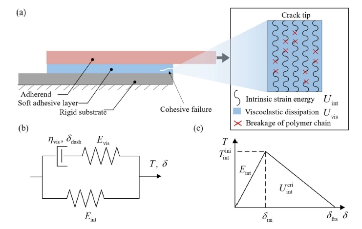 粘彈性:增加膠粘的粘彈性模量或特征時(shí)間會(huì)線性延長延遲時(shí)間,但不影響最終脫粘長度。